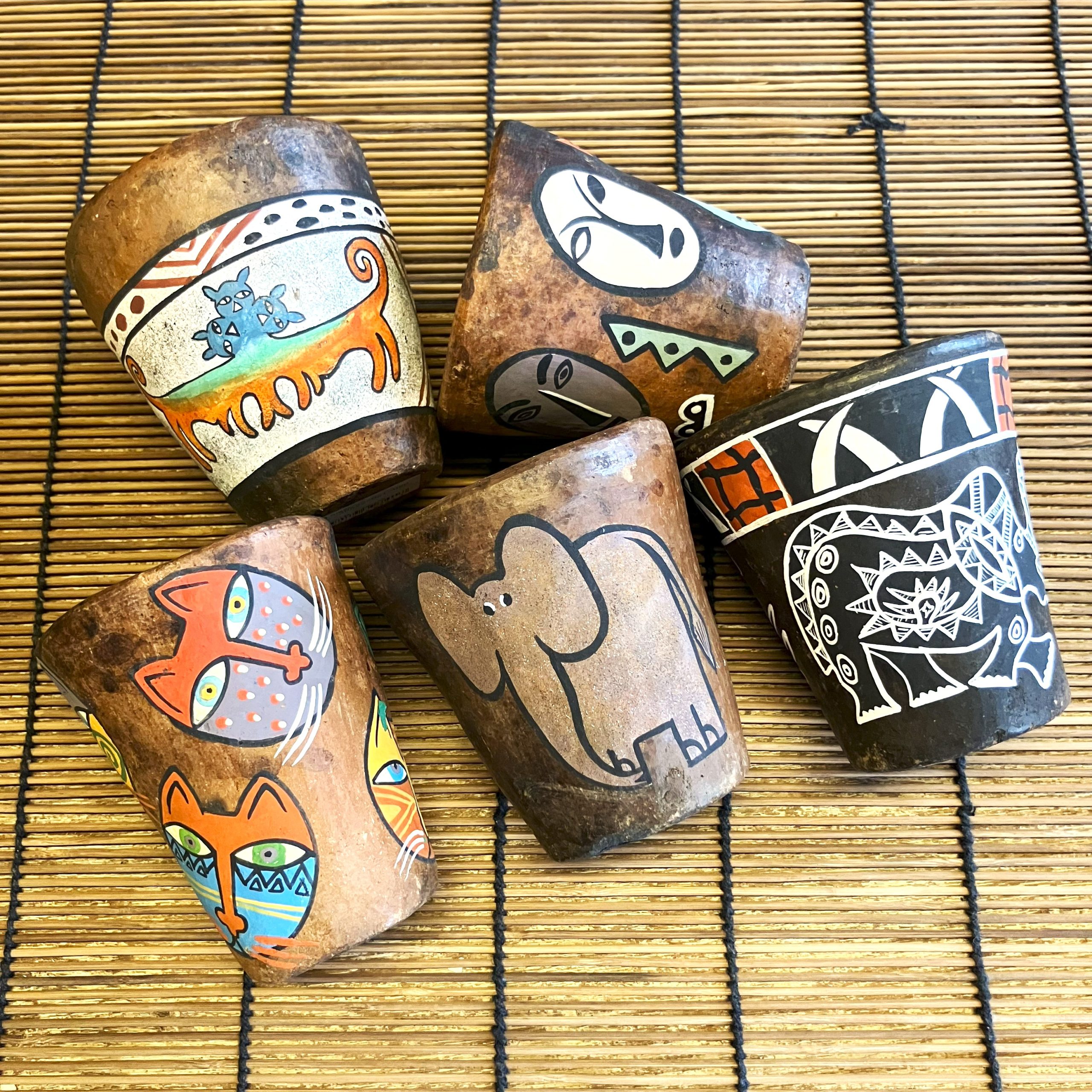 アフリカ、ケニアの手描きペイントが興味をそそる素焼き鉢です。